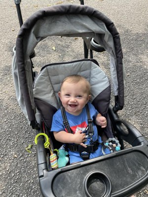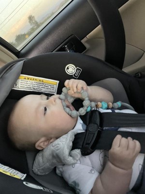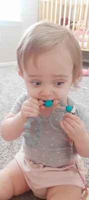 We love this teether, clips on easy so baby doesn’t lose it. He’s able to grab it while in his car set or stroller.