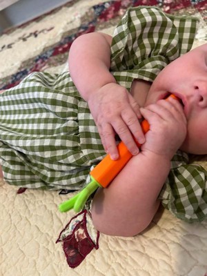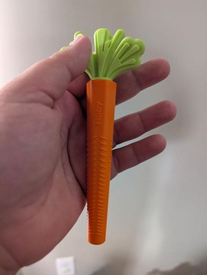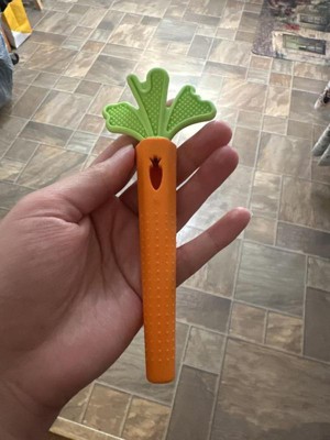 - Fun carrot teether helps foster positive food association
