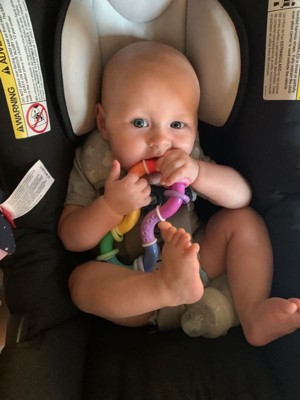 [This review was collected as part of a promotion.] My niece loves this toy! She’s a year old and teething, and this has been one of the best toys for her. She loved the rattle sound and I’m guessing the colors help keep her interest too.