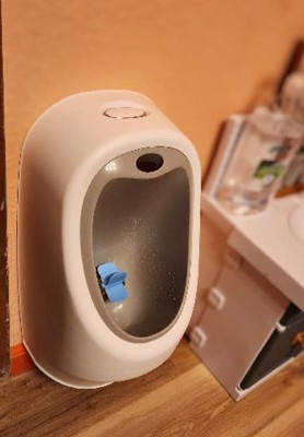 Perfect for teaching toddlers how to stand and pee, and easy to lift out to clean and empty. My husband 3d printed a mount for it to hook to the wall so it won't fall over.