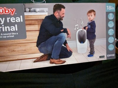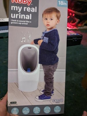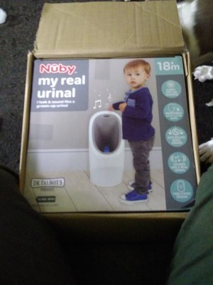 Potty training can be intimidating for little ones. Nuby's My Real Urinal helps make the experience relaxed and fun for parent and child. The My Real Urinal design mirrors full-size urinals, which help children transition to a real urinal when they are ready. My Real Urinal features a spinning target to help little ones practice their aim, while the free-standing design assists with strengthening their balance. Realistic flushing sounds are fun and engaging, making the learning process easier for children. Cleanup is easy for parents, thanks to the removable bowl. Get started on urinal training with your little one today!
