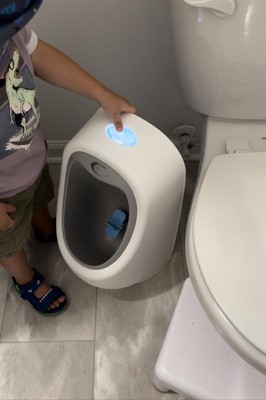 My 2 year old grandson uses this like a charm! It is the cutest thing to see him stand like a big boy, but the target without making a mess, then reach up to “flush” it afterwards! It is so cute that I had to share the link to the little urinal with friends and family. (Helpful hint in case any mothers are afraid of accidents…. I just set it up in our walk in shower and he matches in there like he’s got his very own stall all to himself! Love it!