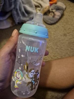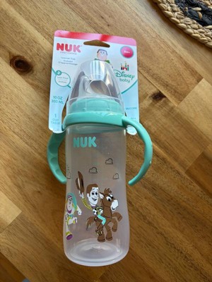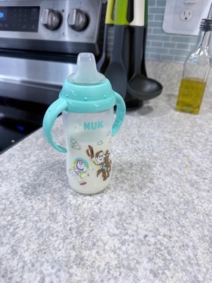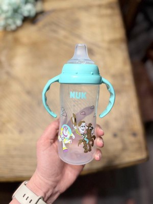 [This review was collected as part of a promotion.] The Nuk First Choice Toy Story Large Learner Cup is absolutely adorable! I love that you can use it with or without the handle. It holds up to 10 ounces of fluids, which is another plus for me! I would say there is minimal leakage, but also my 15 month old likes to throw and shake his sippy cups so it is bound to leak some. Overall, this is an amazing choice, especially for littles learning how to transition from a bottle to a sippy cup.