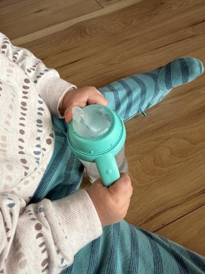 [This review was collected as part of a promotion.] My baby and I loved this bottle. She’s at the perfect age to go to a transition to a sippy cup and this one worked great (I even ordered 2 more after trying it). The quality is great made it with a good plastic material! It’s also very easy to clean and maintain, all the parts comes apart which makes cleaning simple. I also put it in the dishwasher and had zero problems. My 11 months old daughter hasn’t chocked while drinking her water from it and the design makes it easy for her to hold it and use on her own.