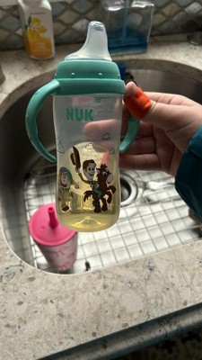 [This review was collected as part of a promotion.] The Toy Story design is charming, and the colors are super cheerful. I loved how the handles are very comfortable for little hands, and the nipple is soft—perfect for transitioning from a bottle. Plus, it doesn't leak, it's durable, and it's easy to clean.
