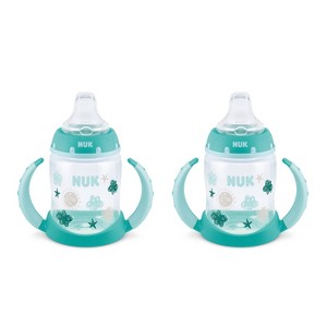 The NUK Learner Cup easily promotes baby’s transition from breast or bottle to sippy cup. This Learner Cup features a spill-proof soft spout that is gentle on teeth and gums, and it includes an air vent that helps reduce swallowed air. The cup also comes with easy-to-grip, removable handles that your growing child will love. NUK Learner Cups are BPA free and dishwasher safe. Our 5 oz Learner cups are recommended for ages 6m+.