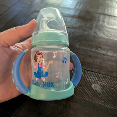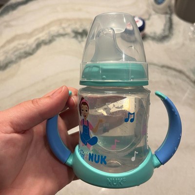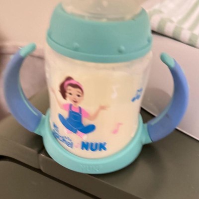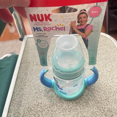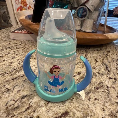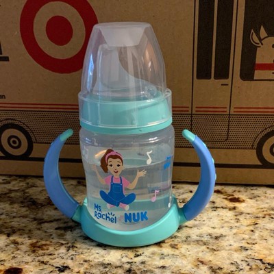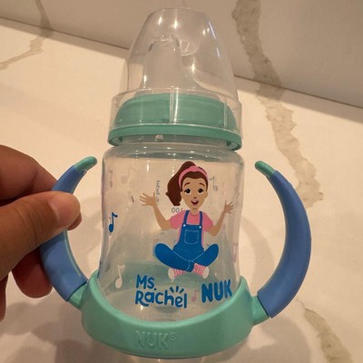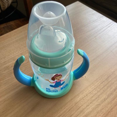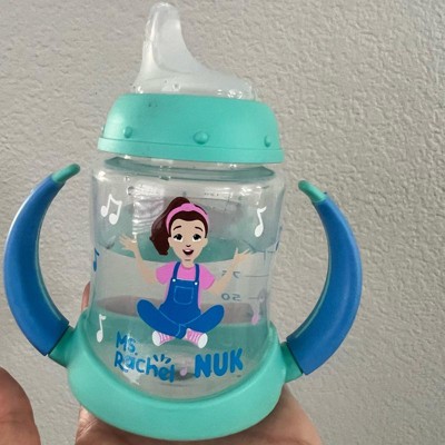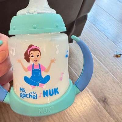[This review was collected as part of a promotion.] First off, we always live Ms Rachel! This Nuk training cup is great for transitioning baby from the bottle. The handles are great and easy for babies to hold. The soft silicone sip topper is a good transition from the bottles and being off center makes it easier for baby to feed himself. The design is great with the cute little Ms Rachel drawing on it. 5 ounce capacity is perfect, not too tiny but not a big heavy clunky bottle. I received an incentive to write this review.