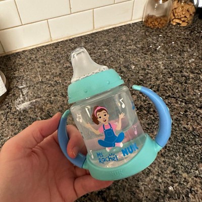 [This review was collected as part of a promotion.] My baby loves this cup! I bought it to serve water with meals but she’s so attached to it that I’ve been using it for milk as well. She loves to grip the handles. The cup has a cute picture of Ms. Rachel on it and music notes. The mouthpiece is soft like a bottle nipple. The best part is that it doesn’t leak!! It’s also easy to clean. Like any sippy cup it needs to be tipped way back to get the liquid out. It’s been a great first sippy cup for our girl. I received an incentive to write this review.
