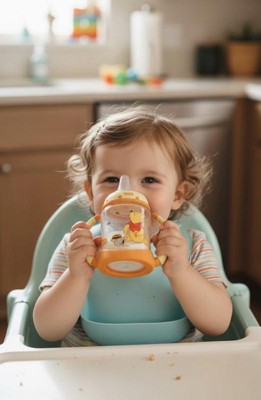 The NUK Learner Cup is a fantastic choice for parents looking to transition their little ones from a bottle to a true sippy cup. The Winnie the Pooh design is a charming bonus that instantly made it a favorite in our house, captivating our toddler's attention immediately. Ease of Transition The star feature of this cup is the soft spout. It’s made of a gentle silicone material that feels familiar, making the switch from a bottle nipple much smoother. The twin handles are perfectly sized for little hands (as seen in the photo!), allowing our child to confidently practice holding and tilting the cup independently. Functionality and Design We found the cup to be highly leak-resistant. While no cup is truly immune to being shaken upside down by a determined toddler, this one held up exceptionally well during typical use and drops. The simple, curved shape is easy to clean, and the parts are straightforward to disassemble and reassemble, which is a huge win for busy parents. The design is also thoughtfully lightweight, even when full, meaning it's easy for the baby to manage without struggle. Minor Considerations The only minor drawback is that, like most sippy cups, it has a few grooves where milk or juice can settle, requiring thorough washing—but this is a small price to pay for its superior leak-proofing. Final Verdict If you are starting the transition journey, the NUK Learner Cup is highly recommended. It combines a soft, familiar spout with a baby-friendly, easy-to-grip design, all wrapped up in a delightful package. It's durable, practical, and gets the job done without excessive spills.