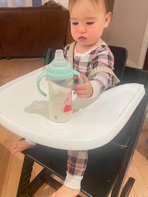 [This review was collected as part of a promotion.] Received this product in exchange for my honest opinion. I will start off this review by saying that I know every child is different. Developmentally babies move at different rates. Also some products that work for my kid, may not work for others. That being said this cup was rather difficult for my 11 month old to use, but also the cup was difficult for myself a 35-year-old adult to use. No matter how much my kid tried to drink nothing was coming out of the top. Since he is in the process of transitioning bottle to different cups I figured it was just user error. For science I tried myself and no matter how hard I tried I got about one squirt of liquid out of the bottle. Not sure if it’s defective on my end, or it’s just not meant to be. Some pros, bottle comes with the handles for easy baby holding. Bottle can be filled with a good amount of liquid. Bottle is sturdy and nice to travel with, if only we could use it. Peppa picture is cute too.