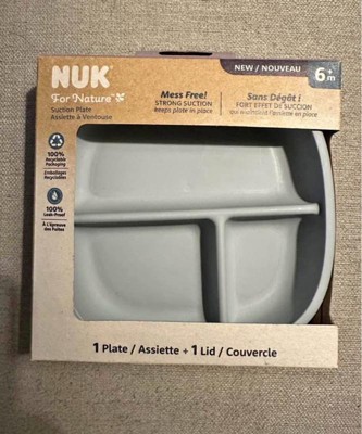Mealtime can be messy with babies who are just starting to feed themselves. The NUK for Nature™ Suction Plate and Lid is designed to prevent accidental tipping and minimize the temptation to toss plates onto the floor. The strong suction base sticks to most flat surfaces, and the quick-release tab makes removal easy for parents. Three uniquely sized, deep divided sections have high walls with curves that help baby get more food onto their spoon as they scoop against the sides. NUK suction plates also come with a leak-proof lid, great for travel and for post-mealtime storage in the refrigerator. The plate is microwave-safe for warming up meals, and is top-rack dishwasher-safe for fast, parent-friendly cleanup. And you can feel good knowing that the paperboard packaging is made using 100% recycled fibers! Plus, the plate and lid are BPA-free for total peace of mind.