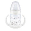NUK® Smooth Flow Bottles are the anti-colic solution for bottle feeding, featuring a unique nipple design that allows baby to control the flow rate for colic-free feeding. This newborn gift set includes: two 5-oz bottles with slow flow nipples and two 10-oz bottles with medium flow nipples; 3 NUK® orthodontic silicone pacifiers; Learner Cup transition kit; and 2 fast flow nipples. This Smooth Flow bottle nipple adjusts the flow based on how your baby drinks, adapting to their suction strength to ensure they will always have the right flow rate. The SafeTemp™ temperature indicator lets you know when milk is too hot with just a glance. The blue thermometer indicator fades when milk is too hot and reappears when milk has cooled and is safe to drink. The two-piece Learner Cup transition kit includes a soft spout and handles, to easily transform your 5 oz bottle into a sippy cup when your child is ready.