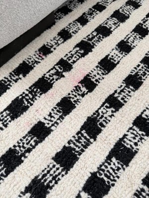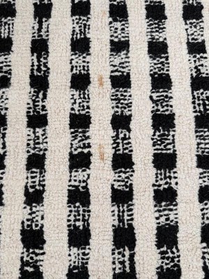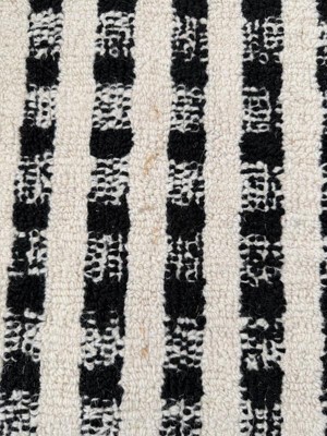 I almost loved this rug so much! It's the perfect thickness/pile and I love the design - but mine arrived with what looked like a dirt stain... turns out, it is gray wool fibers that are woven into the ivory fibers, so I can't clean it or cut it out. Would have been a great rug if not for that very visible imperfection.