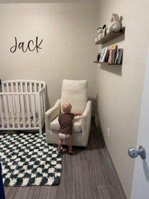 [This review was collected as part of a promotion.] Fun, modern checkerboard rug available in so many sizes. Went 6’ round for a very square nursery. Rug is all poly and very soft, however it did have a strong chemical odor at first. Aired outdoors over our deck chairs for a few days. The length of the shag is substantial, haven’t attempted vacuuming yet. The cream and beige is neutral and very easy to work with. Rugs USA had the best price around!