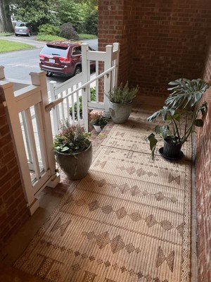 [This review was collected as part of a promotion.] These rugs are very nice quality, especially for the price. I love the design. It’s a little bit different but still neutral enough. I put two 4 x 6 rugs and to end to cover most of my porch since A 4 x 12 doesn’t exist.