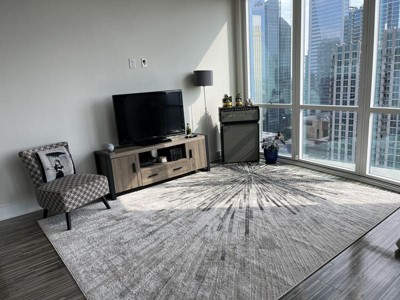 Guests appreciate the rug for its beautiful design, vibrant colors, and excellent quality. Many find it soft and easy to clean, making it a perfect addition to various spaces like living rooms and dining areas. The rug's ability to complement existing decor and its modern aesthetic are frequently highlighted. While some guests mention it being thinner than expected, overall satisfaction with the purchase is high, with many expressing excitement about their new decor.