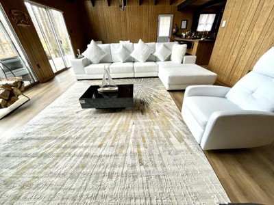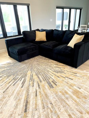 [This review was collected as part of a promotion.] I switched my couch pillows to cream, gold and Ivory. This rug complimented the space perfectly.