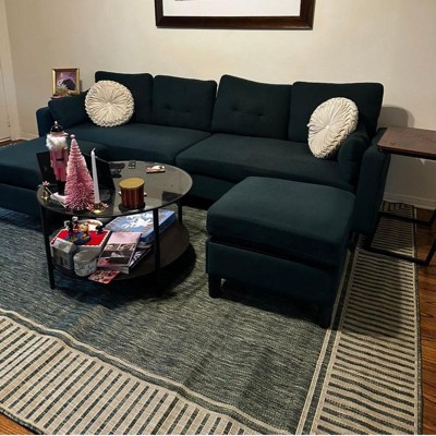 [This review was collected as part of a promotion.] We were pleasantly surprised by the look and quality of the rug. Fits well with our table and chairs, but I absolutely love the color. It’s soft enough to be on barefoot. It’s on the thinner side but that was not a factor for us.