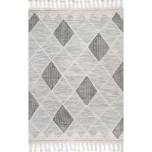 Nuloom Becca Diamond Trellis Tassel Wool Area Rug, 5' x 8', Beige