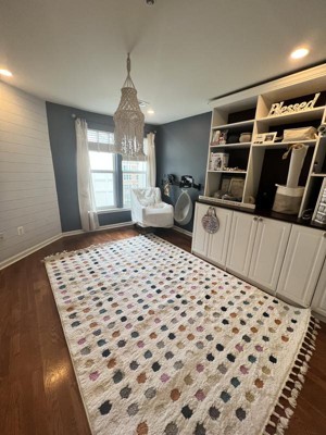 SUCH a cute rug and super great quality. I bought for my daughters room to tie together all the random colors going on in her decor. It worked! It’s so soft that she loves to roll around on it before bed time lol.