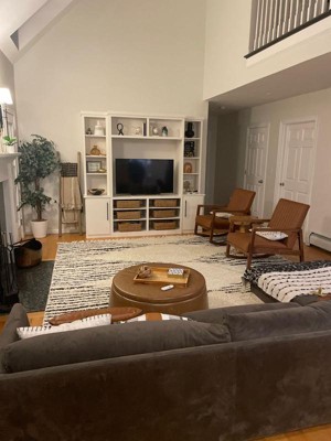 This rug has received positive feedback for its soft texture and aesthetic appeal, making it a great addition to various spaces like living rooms, bedrooms, and playrooms. Guests appreciate its ability to enhance the warmth and comfort of their homes while being stylish. However, some concerns about maintenance and durability have been noted, particularly in high-traffic areas. Overall, it offers a cozy feel and a pleasing design that many guests love.