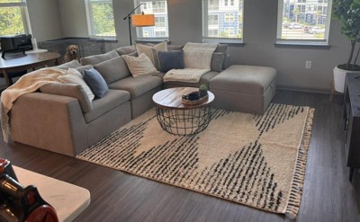 This rug has received positive feedback for its soft texture and aesthetic appeal, making it a great addition to various spaces like living rooms, bedrooms, and playrooms. Guests appreciate its ability to enhance the warmth and comfort of their homes while being stylish. However, some concerns about maintenance and durability have been noted, particularly in high-traffic areas. Overall, it offers a cozy feel and a pleasing design that many guests love.