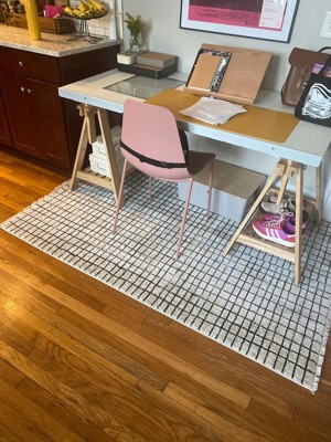 - This checkered area rug has a .45" thickness with 1.18" fringes lining each end