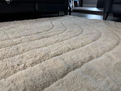 Create a cozy environment with this faux rabbit machine washable area rug. This floor covering is machine made of synthetic fibers that give an incredibly soft texture underfoot. With a geometric wavy design, this rug will give the perfect modern touch to your space. Our machine-washable rugs are spill and stain resistant making it perfect for those with kids and pets. When that inevitable stain happens, roll your rug up and place it in your washing machine! Hang dry and simply put your rug in the desired place, with no rug pad required with our innovative non-slip backing.
