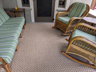 [This review was collected as part of a promotion.] Used this rug for under a white Polywood set with Navy Sunbrella. Completed the look I was going for and very soft to walk on.