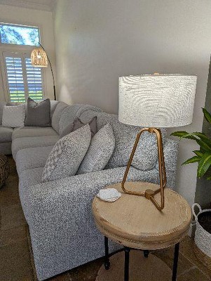 I purchased a pair of these lamps for a client, and was overall very pleased. They come very well packaged and included a light bulb, which was a nice surprise. The quality is good for the price point, and the lamps feel very sturdy. The gold painted finish has small flecks of black which give off a slight patina finish. I was pleased to find that the shade was just slightly off white—not cream, but not stark white like some shades. It’s also a woven texture rather than flat or silk. Overall a nice transitional piece that could coordinate with many different aesthetics.