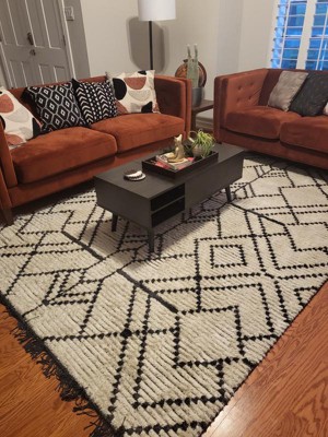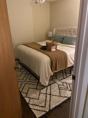 I really love this rug in my bedroom! It is soft and I love the tassels. FYI they are grey and not black.