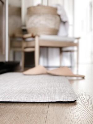 [This review was collected as part of a promotion.] I end up standing at the kitchen counter more often than not. This is a huge help for back pain from standing and is neutral enough to blend with most floors.