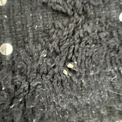 [This review was collected as part of a promotion.] Very pretty rug, seems well made. Has one glaring error (missing tassels in one spot) but otherwise so far we’re pleased. Love the sparkler and how the sequins catch different light.