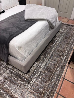 [This review was collected as part of a promotion.] Love this rug, it’s a low pile and does not mat down when you walk on it. I’ve had one in my living room for 5 years and it still looks brand new. I was excited to find this one from my bedroom.! Love the colors, and the distressing effect. Also the design and colors really camouflage any dirt or wear. Great price point. Not thick or plush but I didnt want anything bulky/shaggy.