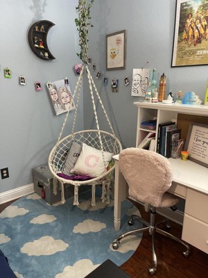 [This review was collected as part of a promotion.] I love this rug for my tween daughter’s room. The plushness of the rug exceeded my expectations. It’s thick enough for her to lounge on the floor if she wanted too. Great for her “chill out” area. I’m very satisfied with my purchase!