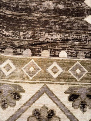 [This review was collected as part of a promotion.] The color of the rug stated brown. The rug we received does have brown but it’s so dark it looks more black. There is also light grey and light green in it which is mentioned nowhere on the website. The picture just looks like brown and cream.