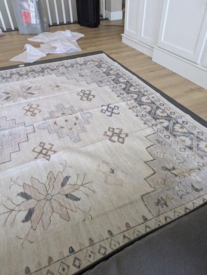 [This review was collected as part of a promotion.] This rug has a lot more green in it than expected. I still like it, but the color is not as neutral as I had hoped. The green is a warm olive tone and very minimal. But it is present. Photos are very hard to capture to show the green color since phones autocorrect the color balance these days so much. My couch is a warm grey currently in the photo. Compare with the black speaker and green water bottle! Again, more green than photos show.