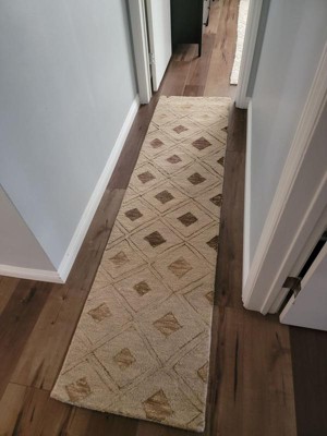 [This review was collected as part of a promotion.] Thick rug, with warm neutral colors. We wanted a natural material for our home and this runner did the trick. It is soft underfoot. There is shedding FYI, that happens with wool, its not as bad as jute though! The pattern can match well with boho vibes. Photos are shown in natural light.