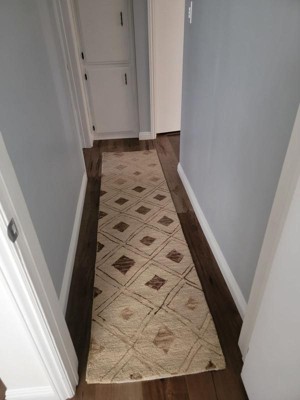 [This review was collected as part of a promotion.] Thick rug, with warm neutral colors. We wanted a natural material for our home and this runner did the trick. It is soft underfoot. There is shedding FYI, that happens with wool, its not as bad as jute though! The pattern can match well with boho vibes. Photos are shown in natural light.