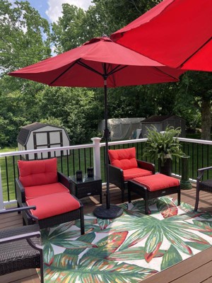 I love this rug! It looks so beautiful on my deck with my red cushions. Very tropical and peaceful.