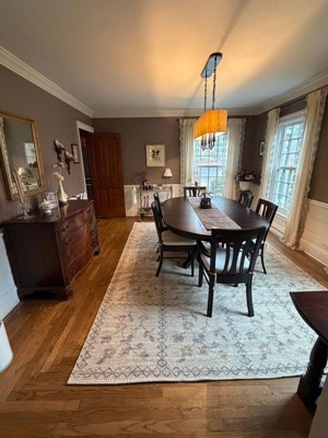 I have been on an endless search for a rug for my dining room. This rug is very pleasing to the eye and feels very nice underfoot. It will wear well as it is a blend of jute and chenille. Highly recommend.