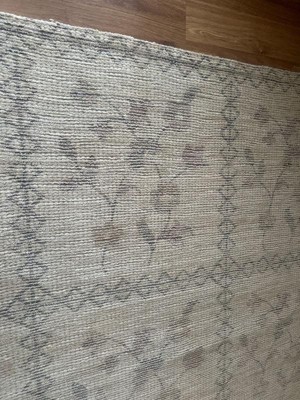 [This review was collected as part of a promotion.] I nearly canceled my order after reading another review that said the rug was faded and looked like it was uneven and splotchy. When the rug arrived, I could see how the other reviewer could have felt that way, however, I did not feel the same way about these qualities. The flower pattern is not too faded in my space and the variation in color does not look splotchy. The rug looks fantastic in my dining room. It is much softer than I expected. It has a jute look to it without the jute feel. It doesn't feel like a luxury rug, of course, but definitely looks like a rug you'd pay far more for at Anthro. She's a keeper!