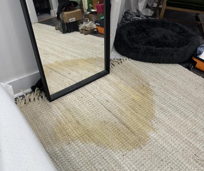 Some water spilled on the rug and now it’s a big stain that won’t come off. Very poor quality the fact this is such an expensive rug and it staining from natural water is a problem. Not satisfied at all, waste of money.