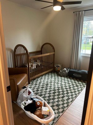 [This review was collected as part of a promotion.] It's such a pretty and soft rug. The folds have become less noticeable with stacks of books and time passing since I laid it out. My one complaint is that I thought that the orange squares were solid color, but it's like different shades in stripes. It's less to my liking but when I'm not focusing on it or see it from afar I still love it so much. It's not the best quality rug either, but it's 2025 and everything manufactured these days is not made to last, it's made to fall apart so you buy more and more. Other than that it's great.