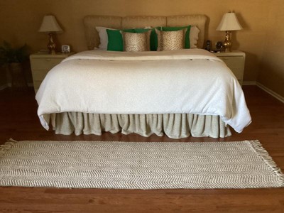 I want to love this. It looks great it my living room… it looks really good. BUT the fringe sheds terribly. I sweep and vacuum daily now, and it’s not enough to keep the fuzz under control. I’m replacing it with something similar that is bound on all edges to prevent this never ending mess.
