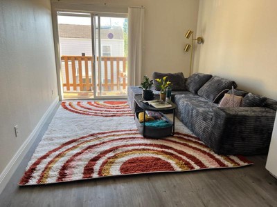 Wanted a little pop of color and texture in my living room & found this cutie. Had my eye on another beautiful shag rug, but it was a little more spendy than I was willing to commit to after just moving & all of the expenses that came with it. Really shaggy and thick, but vacuums up well. Super plush if you wanna have a sit. Exactly what I was looking for at the price point.