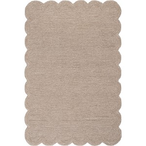 [This review was collected as part of a promotion.] Great rug, fun edge and flexible colors with sand/white combined . The only flaw is a spot of debris on the rug edge which we are hoping can be spot cleaned. Otherwise terrific!