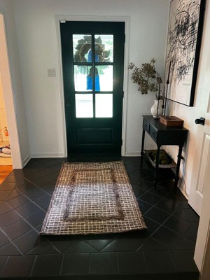 [This review was collected as part of a promotion.] Put this rug in our entryway and I absolutely love the way it looks. It's pretty thick, has some weight to it and feels great to walk on. We have very slick tile floors so it does slide some but not to the point where someone would slip. Knocking off a star because it is showing more wear then I would expect less than a month in but overall I'm super pleased!