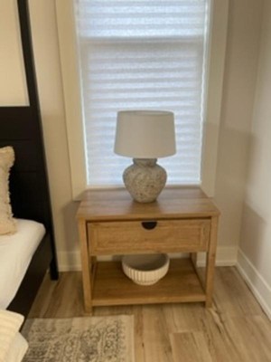 Beautiful lamp! Searched all over for a lamp like this that was the right size, color and style for what I was looking for and so happy I went with this one. I may change out the shade to be more of a beige color (the shade it comes with is a brighter white), but that's an easy fix.
