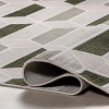[This review was collected as part of a promotion.] I love the pattern and the dark green accent was perfect for my space. Got a smaller one to tie two areas together in my kitchen and it looks great! I have been adding mid century modern elements to my home and this pattern compliments this style great. The rug does have some texture, the white lines are raised a bit, and feels great under foot. Great quality for the price.